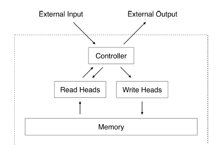上記の構造は認知科学的な背景を持っている。Memoryの一部を「注意」する事で認知的な挙動ができるという考え方である。別の論文では、Attentionを使わずにMemoryを扱う手法を検討している場合もある。